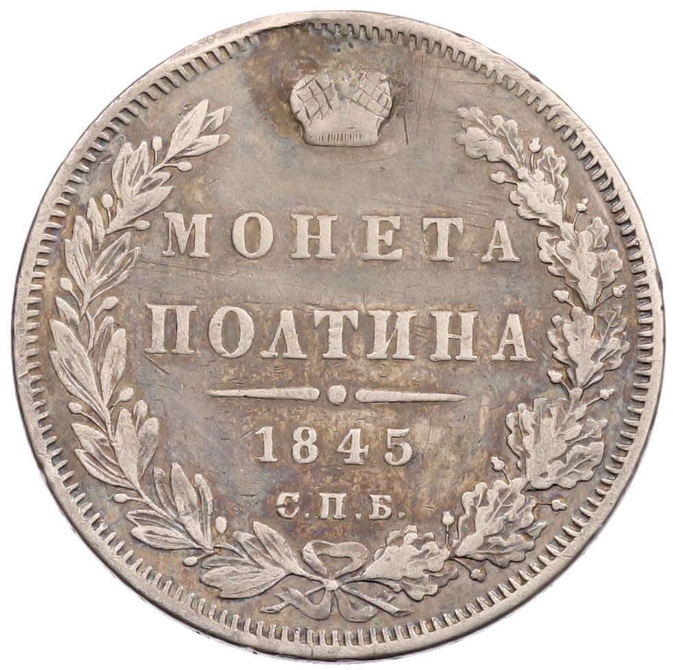 Полтина 1845 года СПБ КБ (Заделанное отверстие)