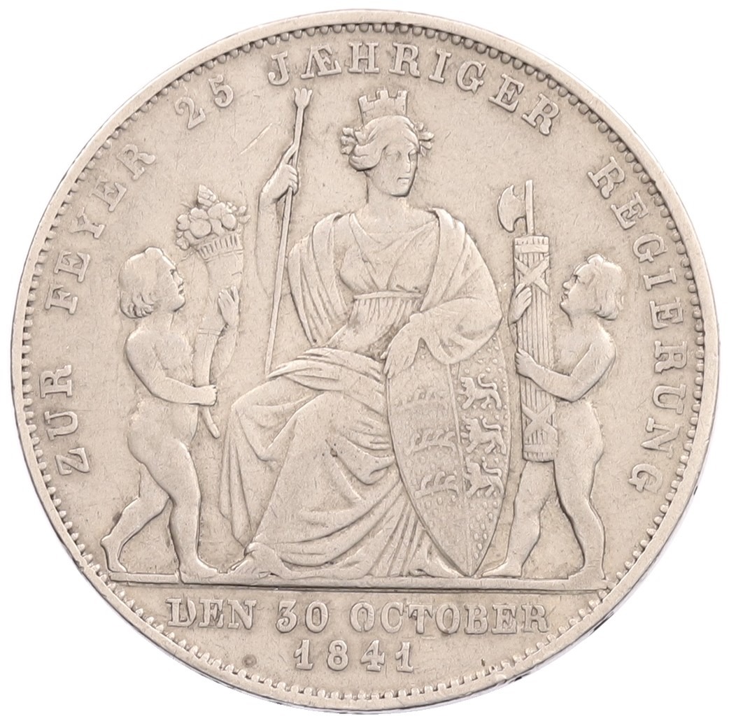 1 гульден 1841 года Вюртемберг «25 лет правлению Короля Вильгельма I»