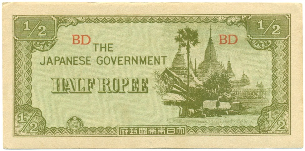 1/2 рупии 1942 года Японская оккупация Мьянмы (Бирмы)
