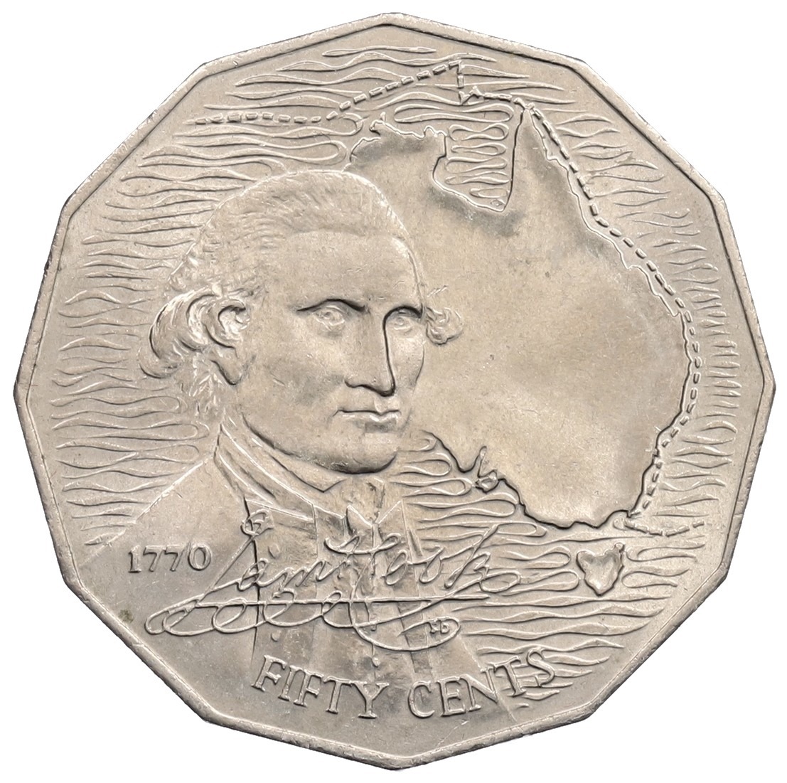 50 центов 1970 года Австралия "200 лет австралийскому путешествию капитана Кука"