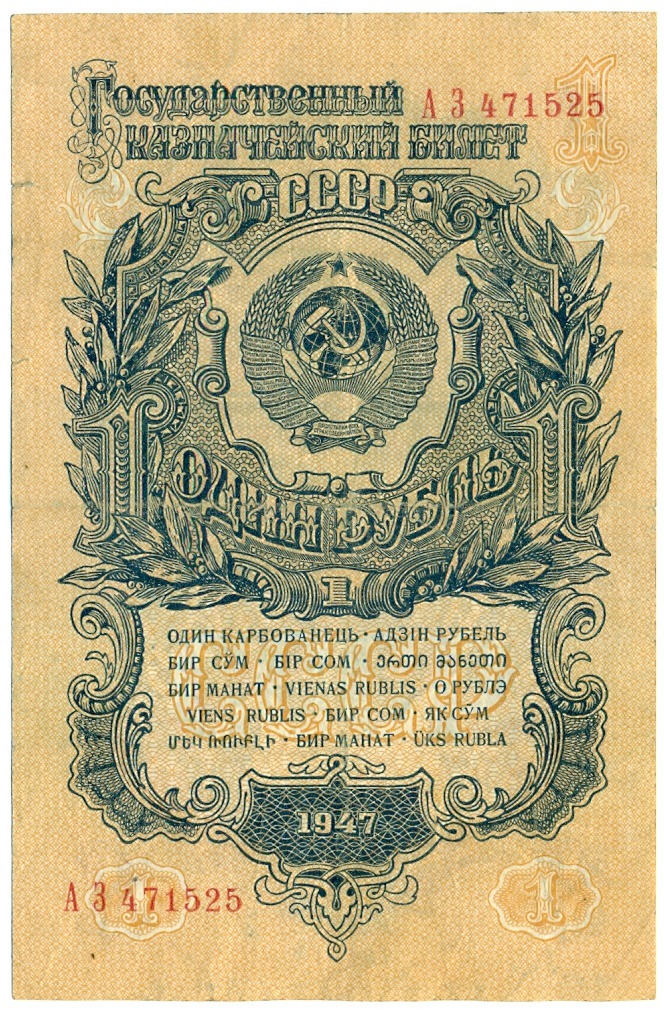 1 рубль 1947 года — 15 лент в гербе (Выпуск 1957 года)