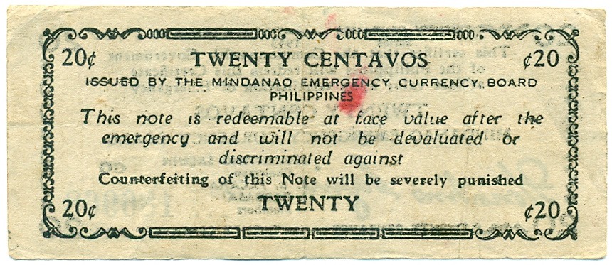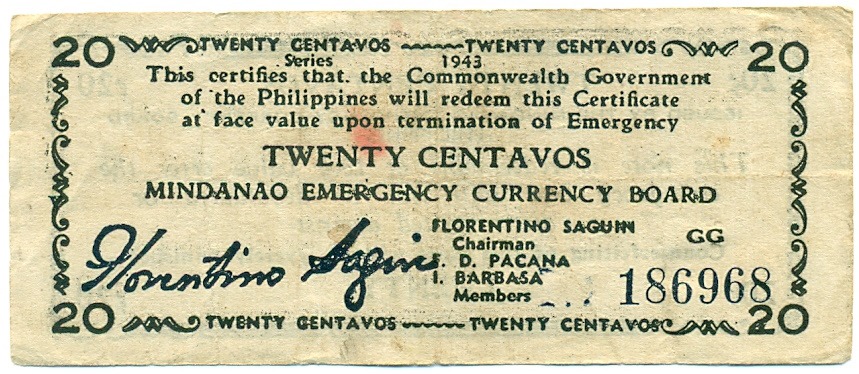 20 сентаво 1943 года Филиппины — провинция Минданао