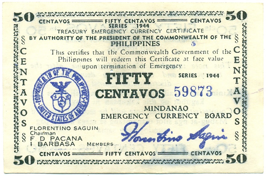 50 сентаво 1944 года Филиппины — провинция Минданао