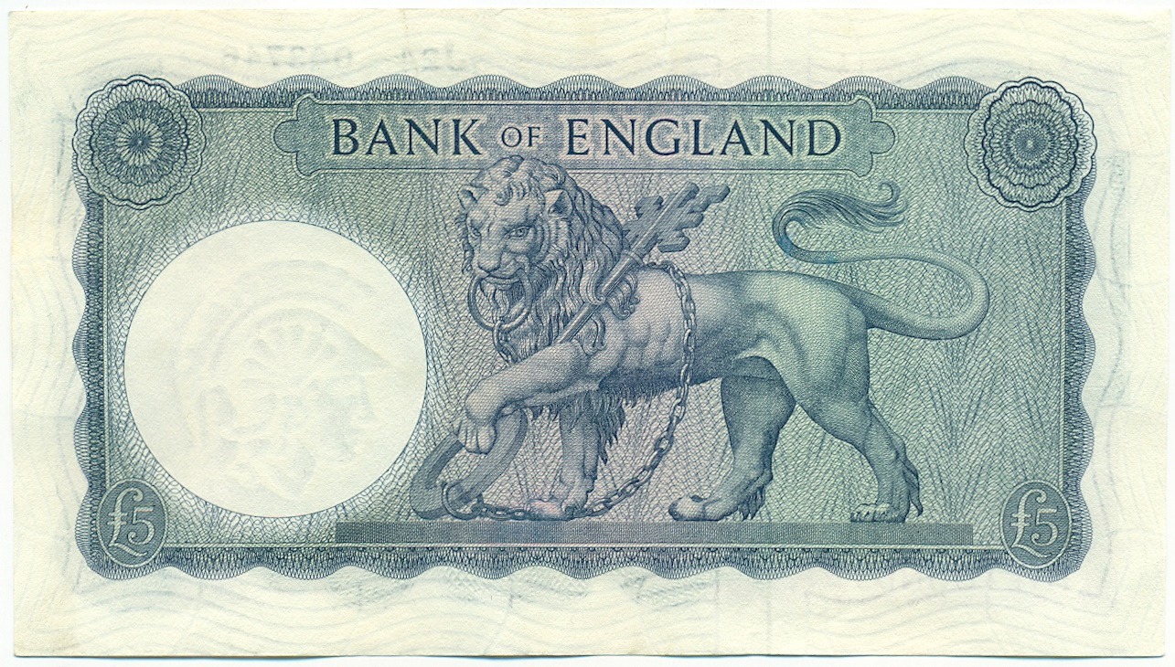 5 фунтов 1957 года Великобритания (Банк Англии)
