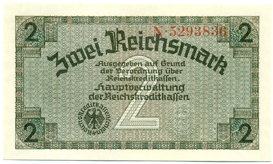 2 рейхсмарки 1940 года Германия (Для оккупированных территорий)