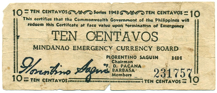 10 сентаво 1943 года Филиппины — провинция Минданао