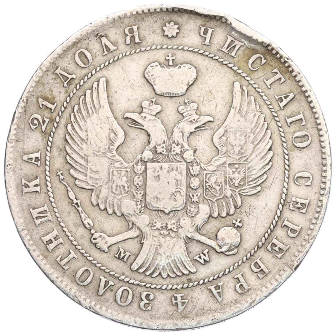 30 копеек 2 злотых 1836 года MW