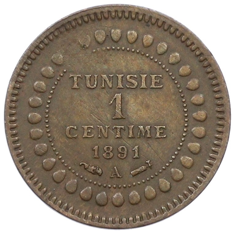 1 сантим 1891 года А Тунис (Французский протекторат)