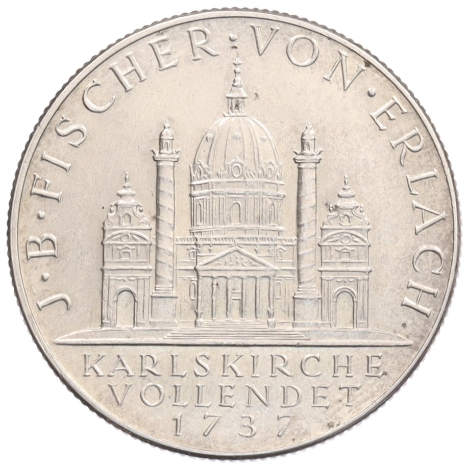 2 шиллинга 1937 года Австрия "200 лет со дня завершения строительства церкви Святого Карла"