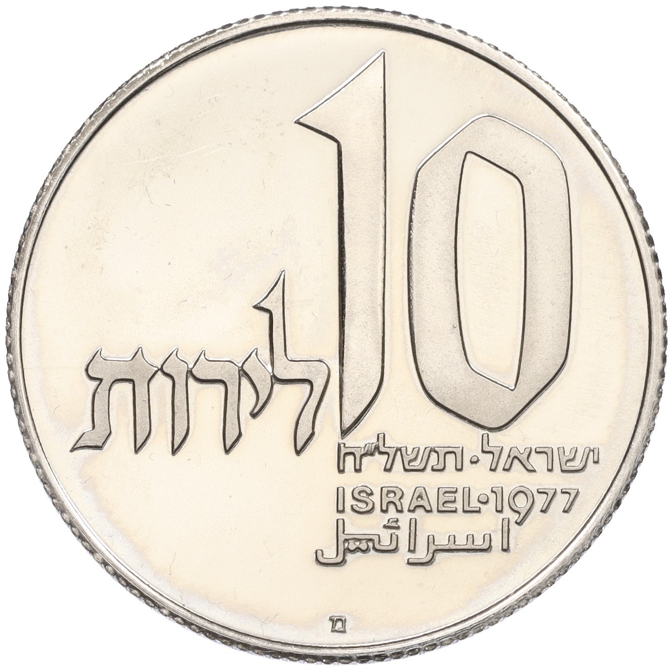 10 шекелей 1977 года Израиль «Ханука — Лампа из Иерусалима»
