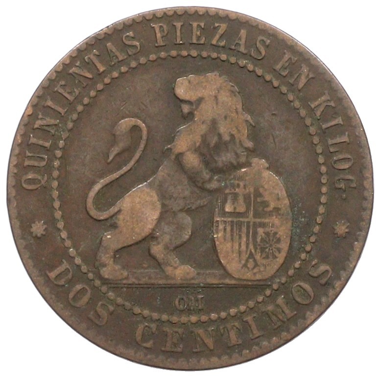 2 сентимо 1870 года Испания