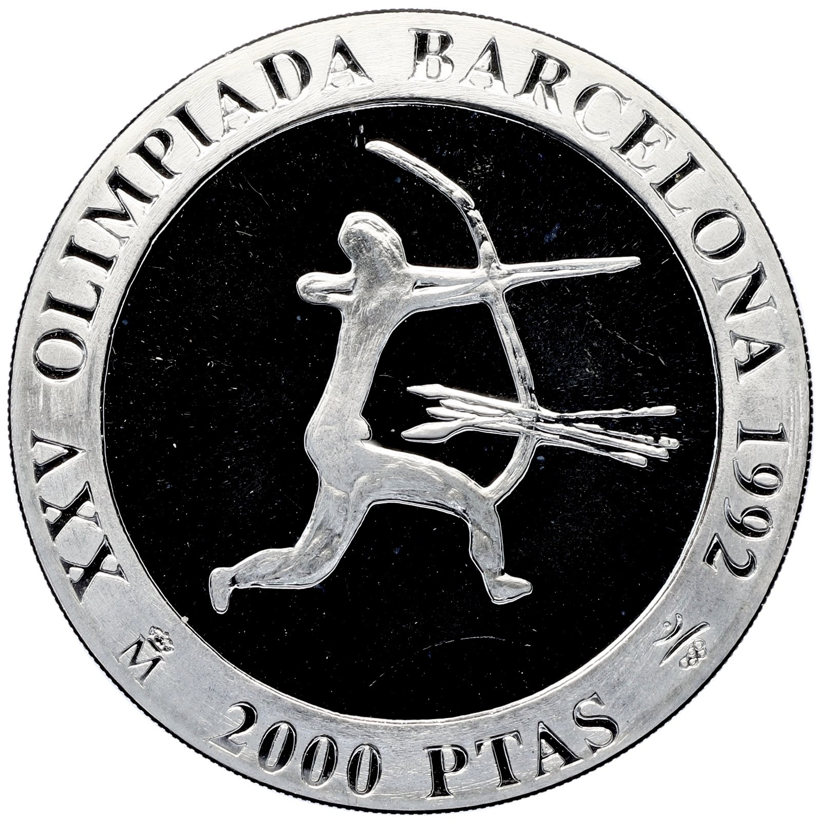 2000 песет 1990 года Испания «XXV Летние Олимпийские игры в Барселоне 1992 — Стрельба из лука»
