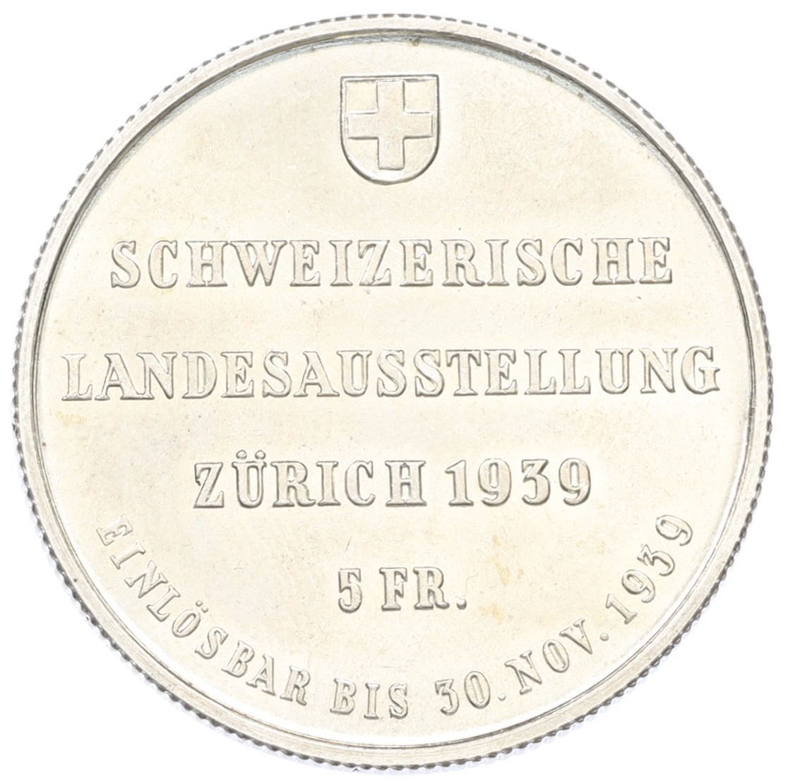 5 франков 1939 года Швейцария «Выставка в Цюрихе»