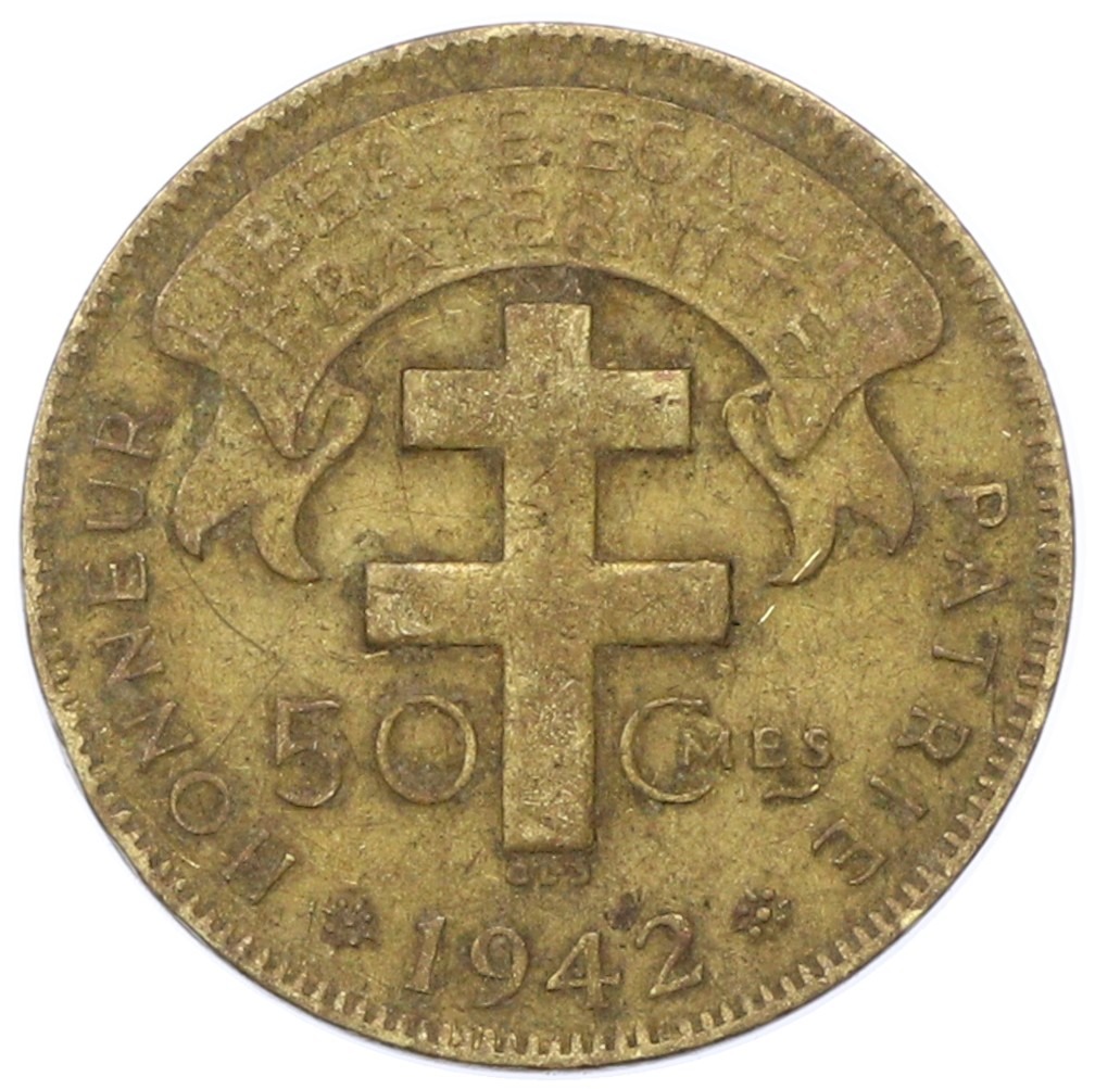 50 сантимов 1942 года Французская Экваториальная Африка