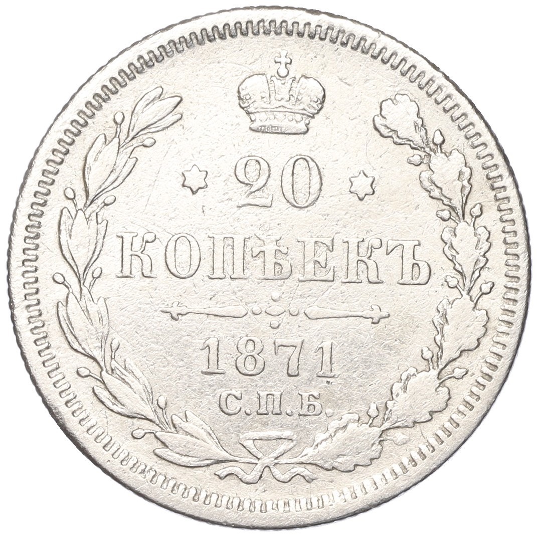 20 копеек 1871 года СПБ НI