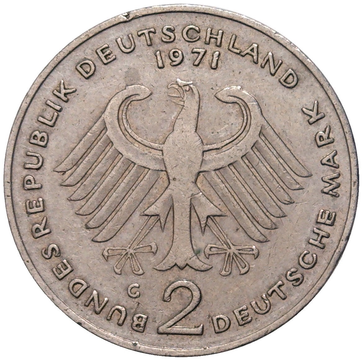 2 марки 1971 года G Западная Германия (ФРГ) «Теодор Хойс»