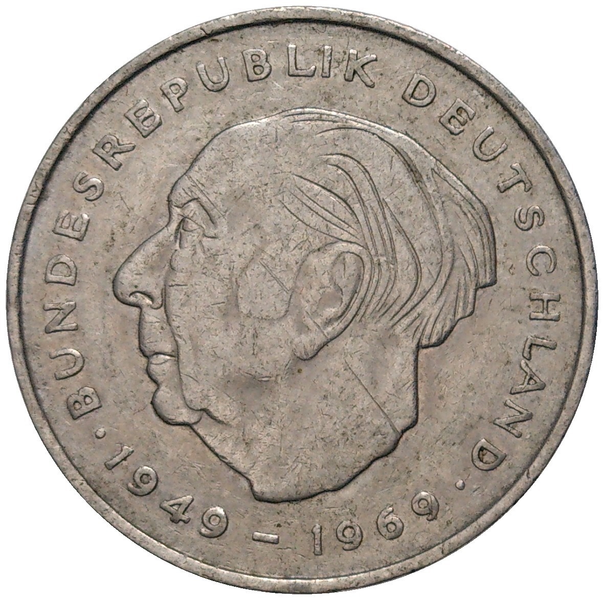 2 марки 1973 года F Западная Германия (ФРГ) «Теодор Хойс»