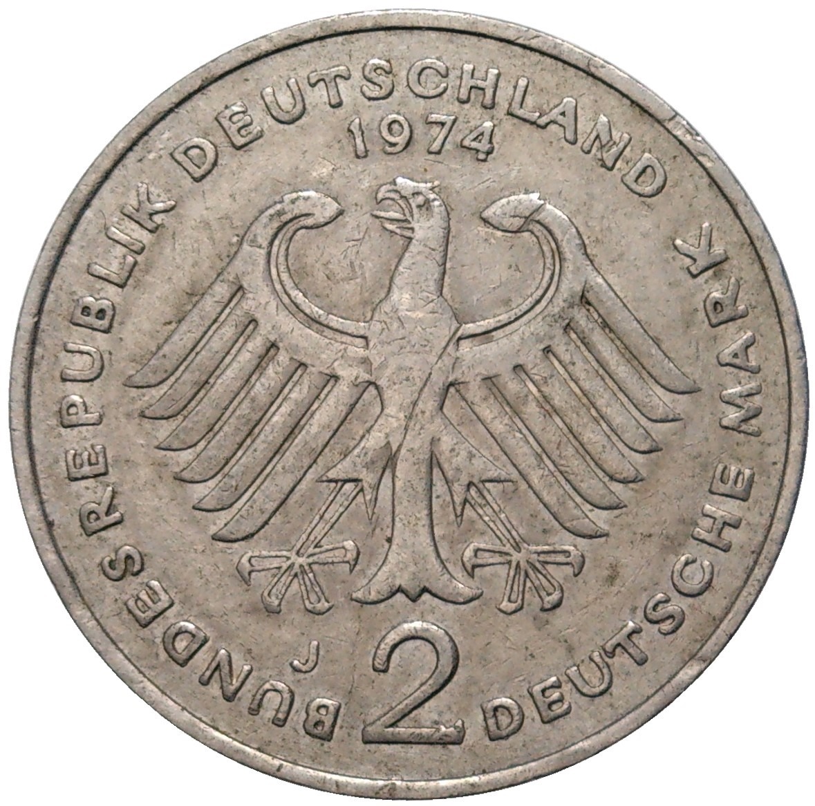 2 марки 1974 года J Западная Германия (ФРГ) «Теодор Хойс»