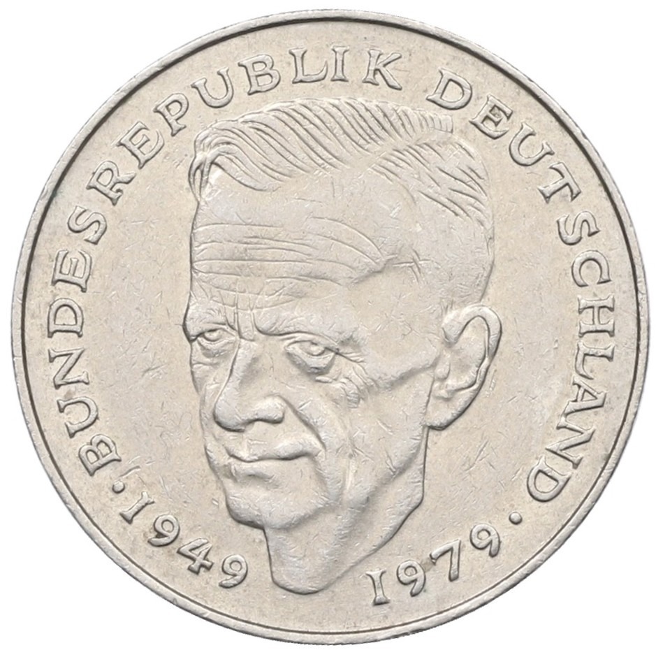 2 марки 1989 года F Западная Германия (ФРГ) «Курт Шумахер»
