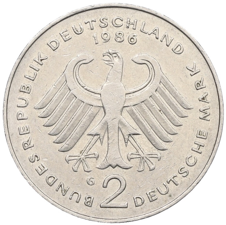 2 марки 1986 года G Западная Германия (ФРГ) «Курт Шумахер»