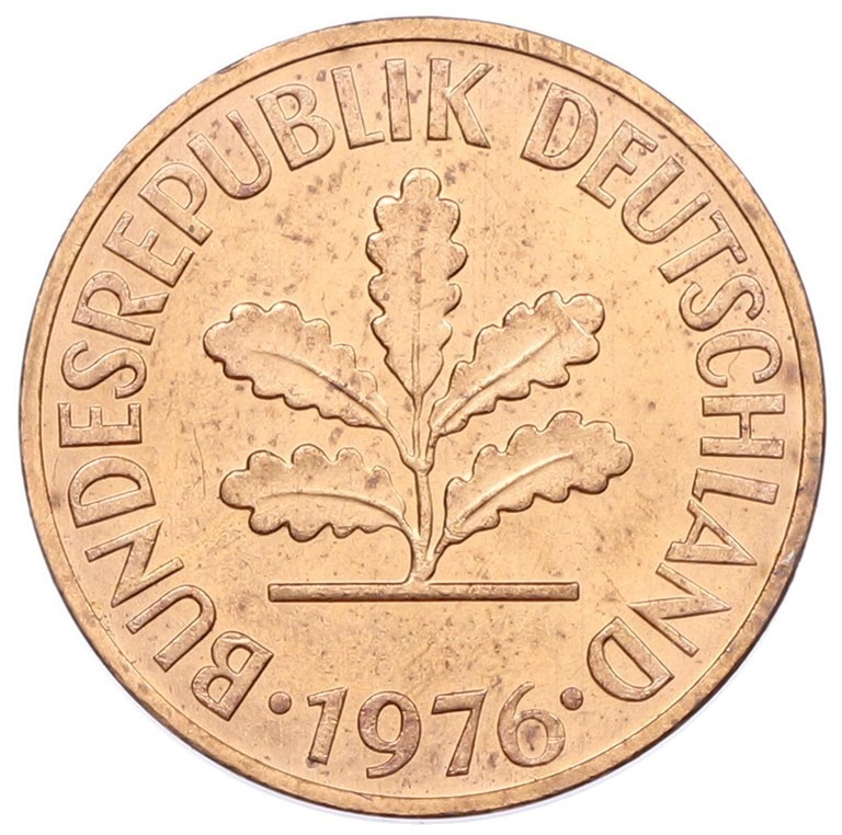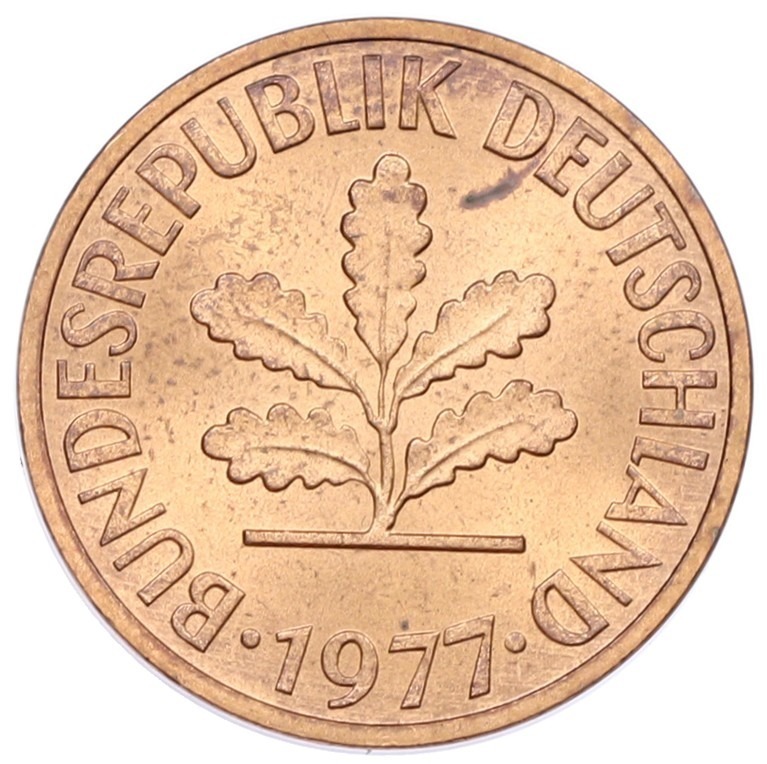 2 пфеннига 1977 года F Западная Германия (ФРГ)