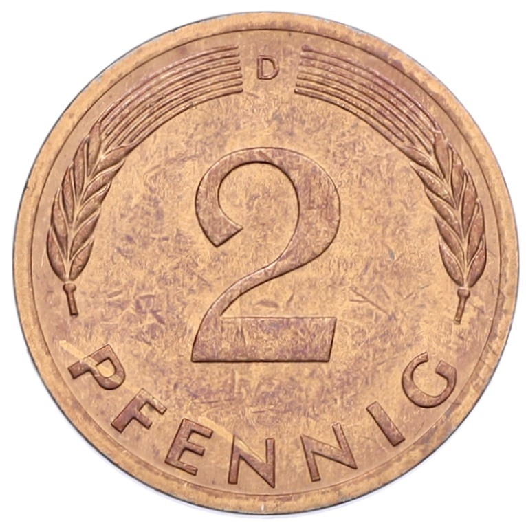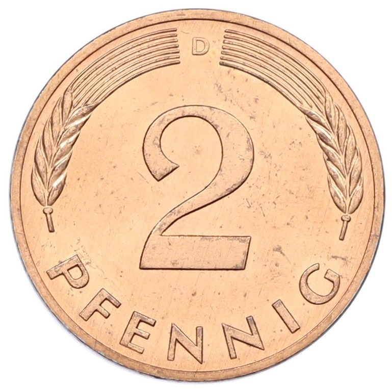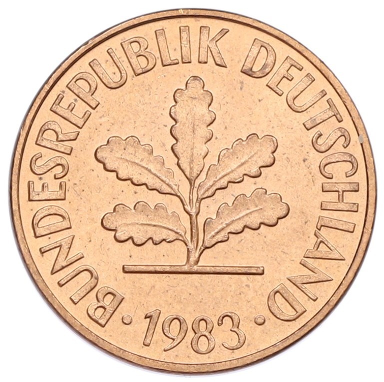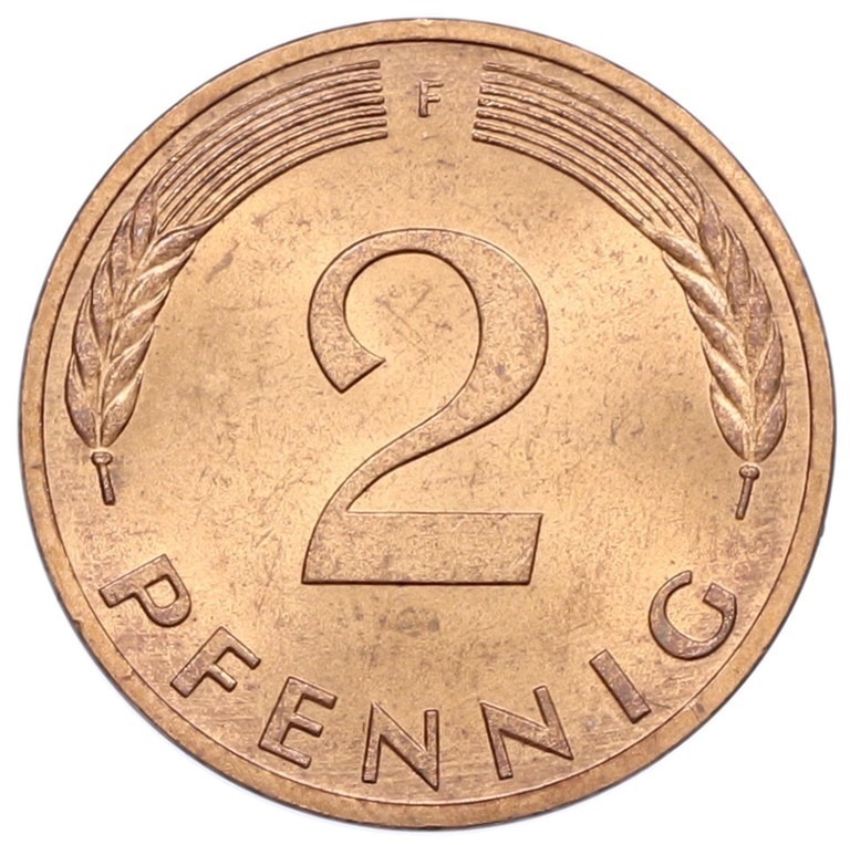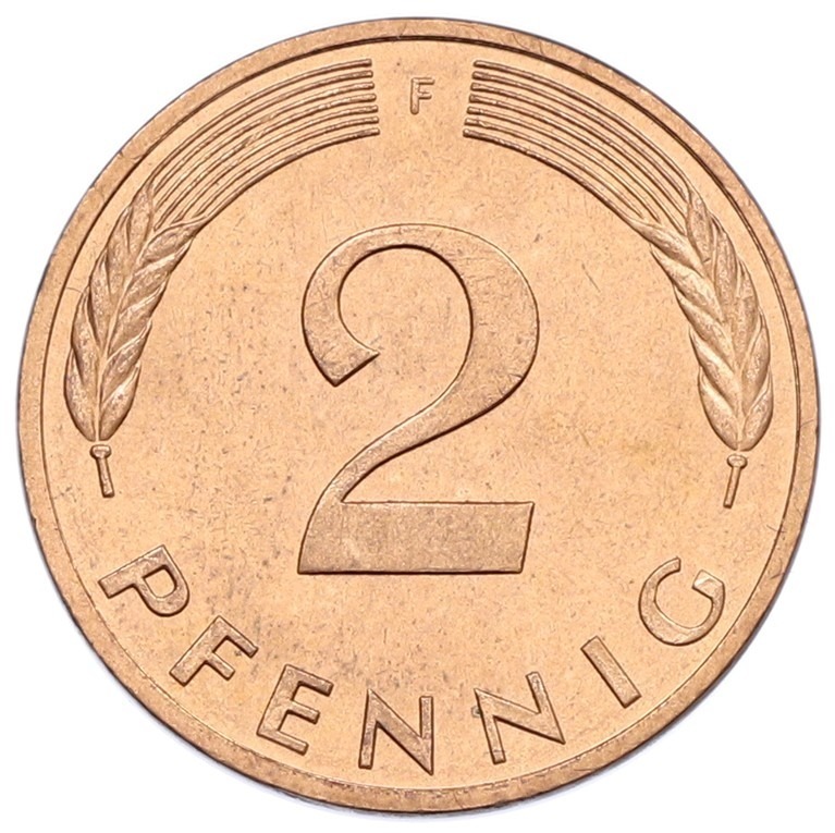 2 пфеннига 1983 года F Западная Германия (ФРГ)