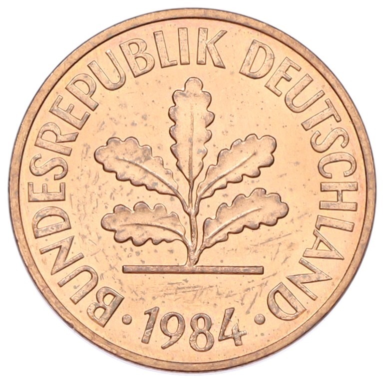 2 пфеннига 1984 года D Западная Германия (ФРГ)