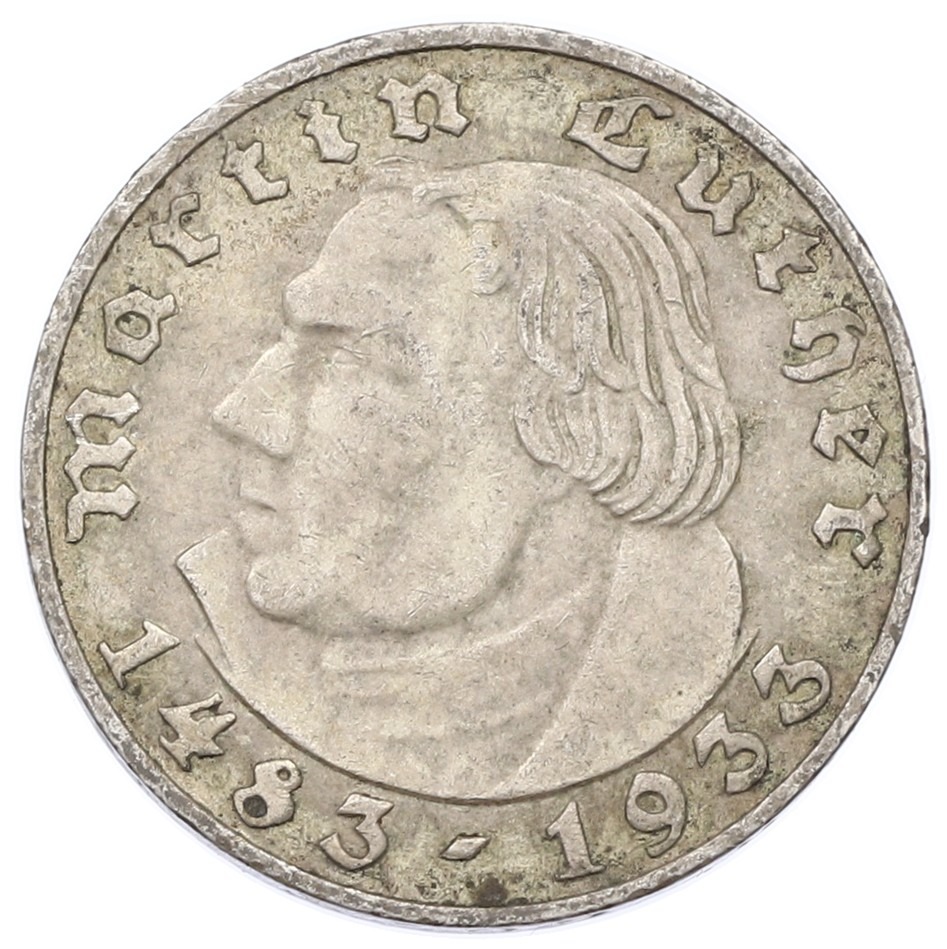 2 рейхсмарки 1933 года A Германия «450 лет со дня рождения Мартина Лютера»