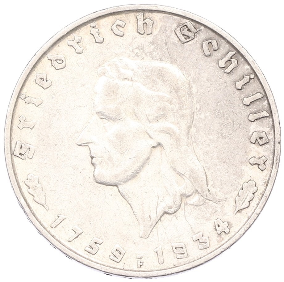 2 рейхсмарки 1934 года F Германия «175 лет со дня рождения Фридриха Шиллера»