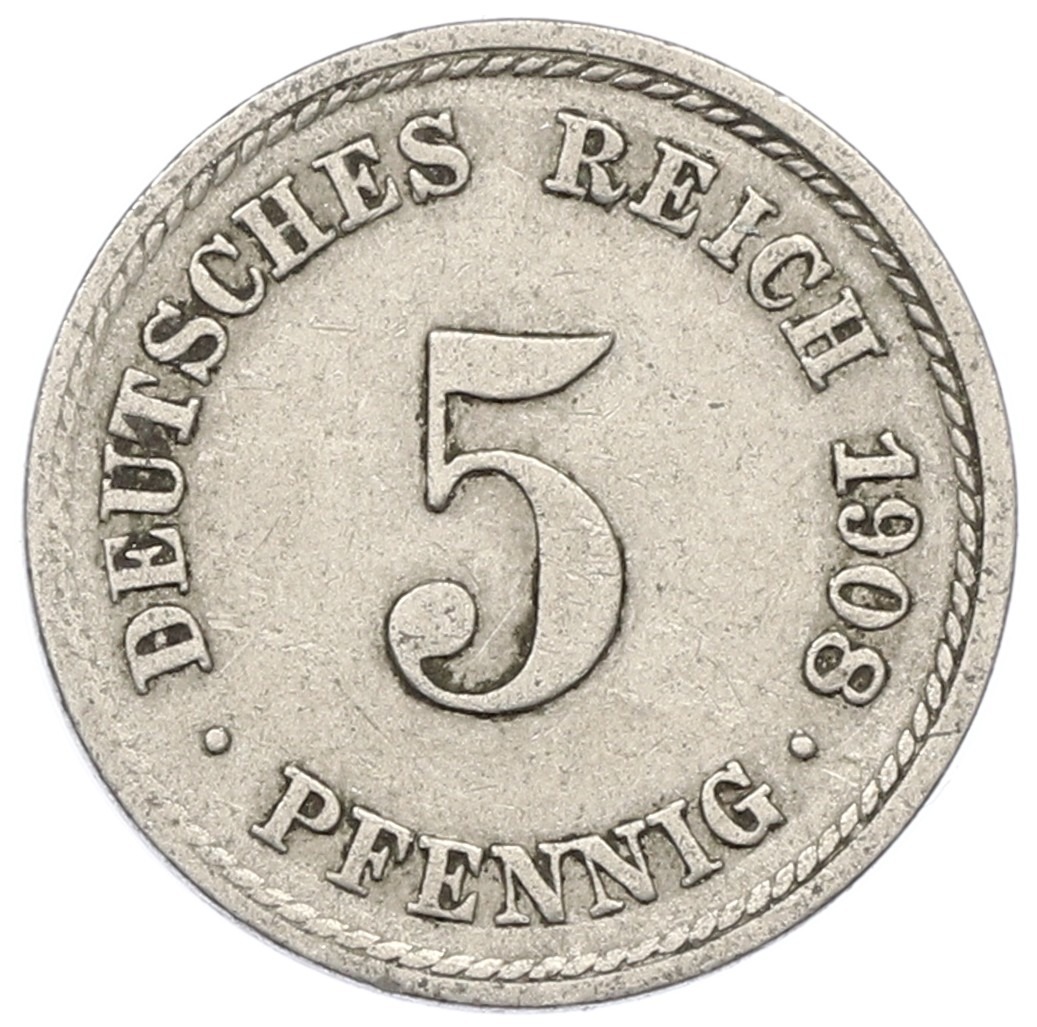 5 пфеннигов 1908 года A Германия