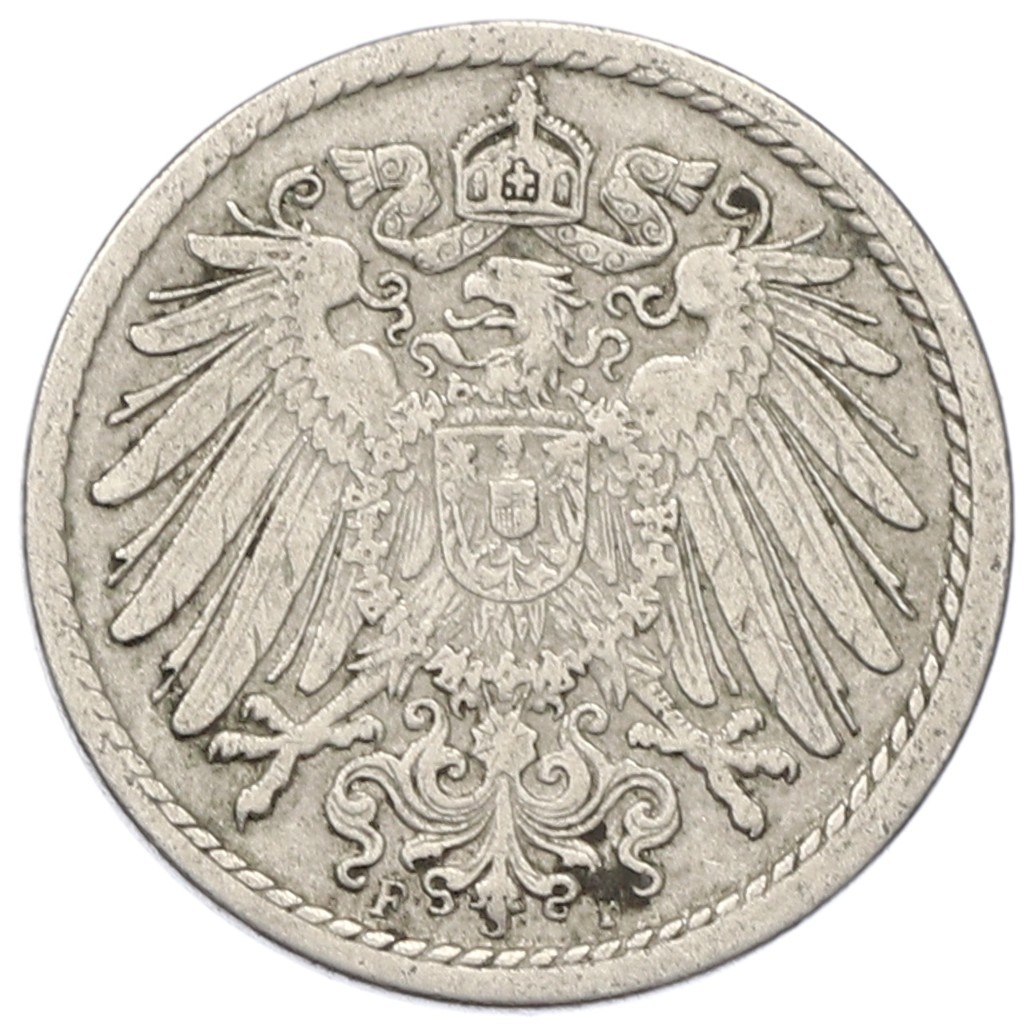 5 пфеннигов 1908 года F Германия