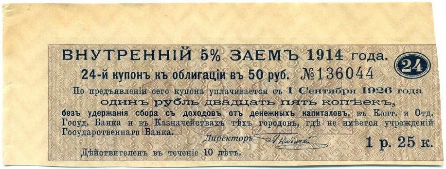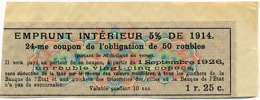 Купон от облигации 50 рублей 1914 года "Внутренний заем"