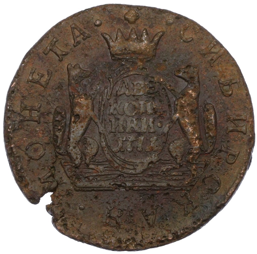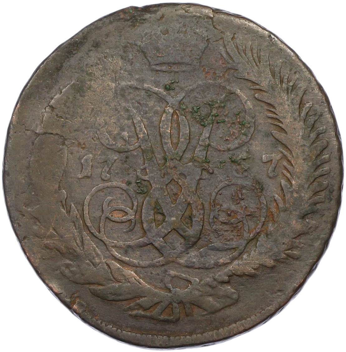 2 копейки 1763 года СПМ (Перечекан из 4 копеек 1762)