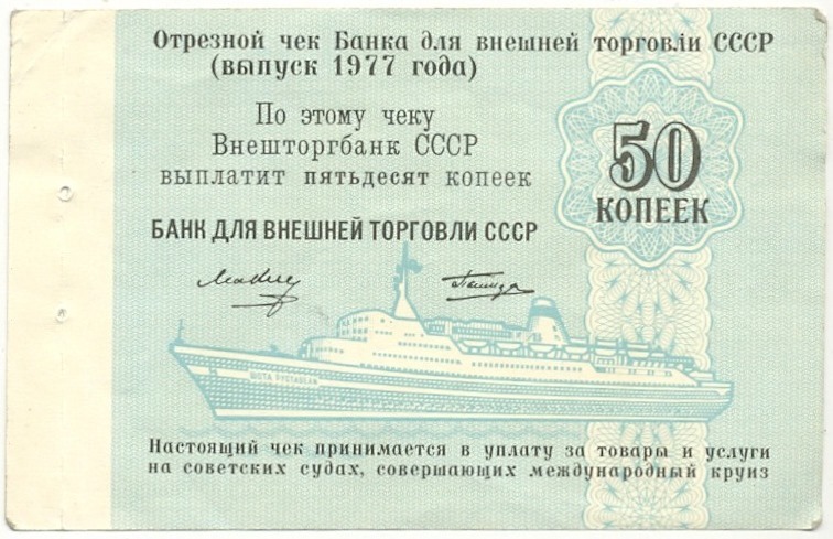 50 копеек 1977 года Круизный отрезной чек Банка для внешней торговли СССР (Без номера)