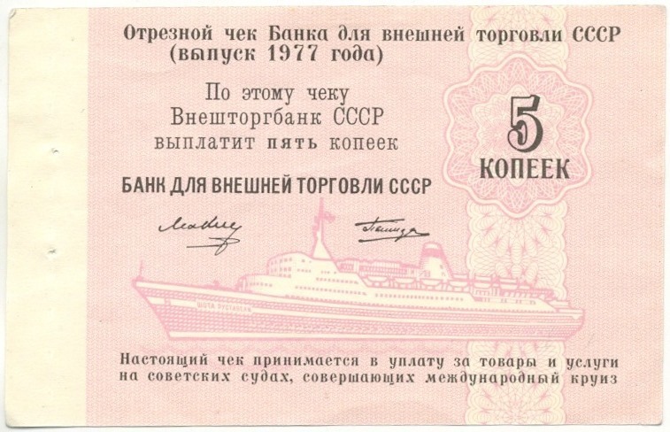 5 копеек 1977 года Круизный отрезной чек Банка для внешней торговли СССР (Без номера)