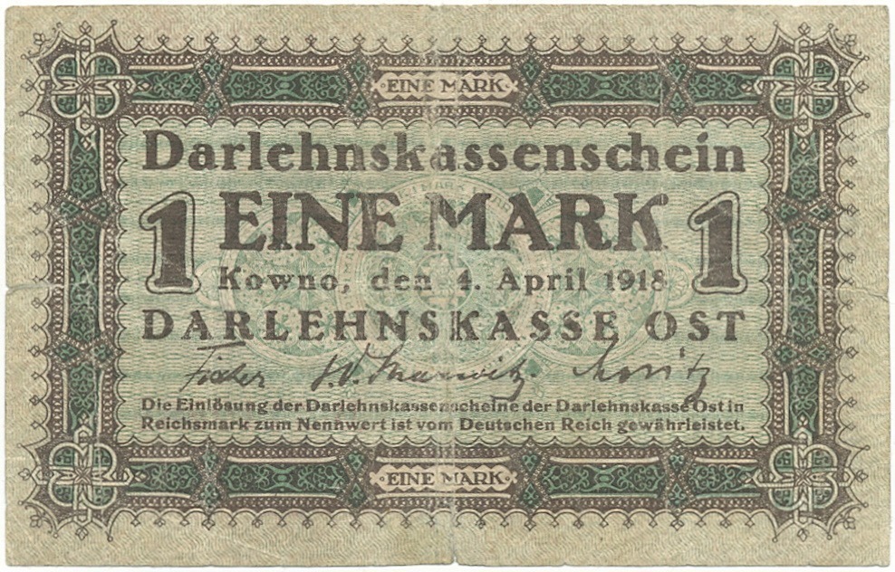 1 марка 1918 года Германская оккупация Литвы — город Ковно (Каунас)