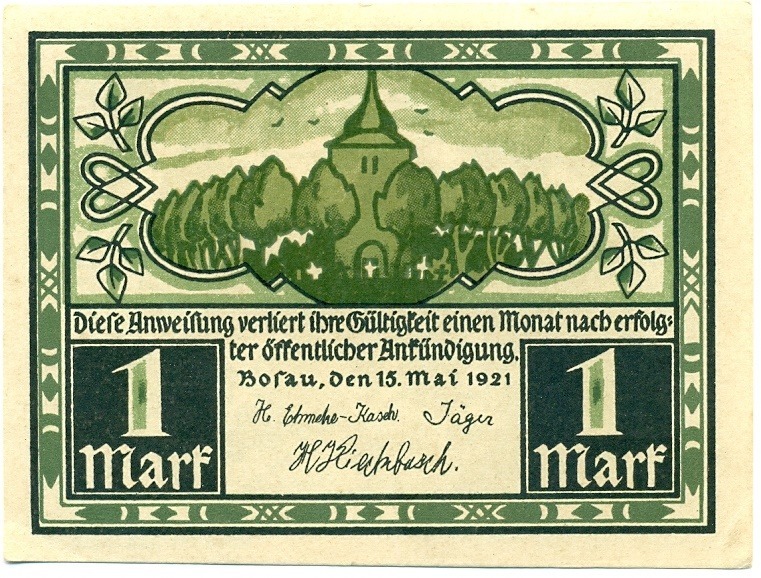 1 марка 1921 года Германия — Бозау (Нотгельд)