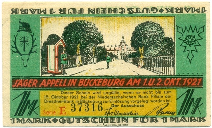 1 марка 1922 года Германия — Бюккебург (Нотгельд)