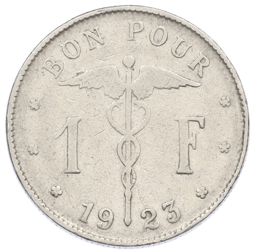 1 франк 1923 года Бельгия (Надпись на французском — BELGIQUE)