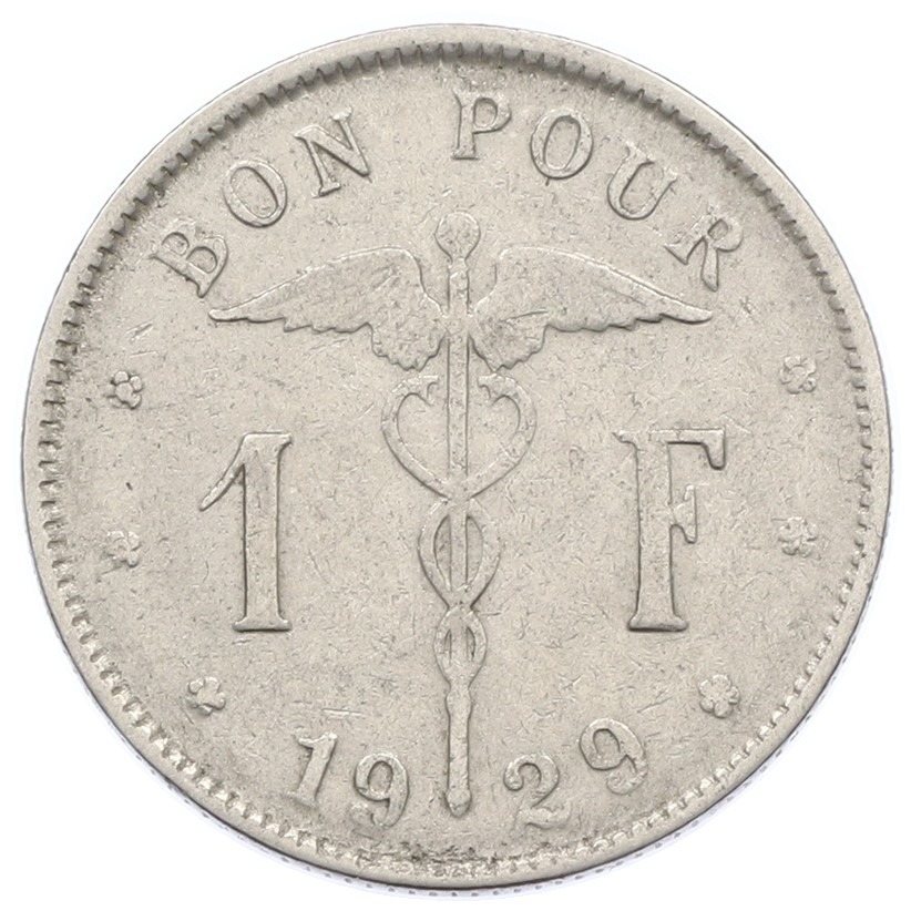 1 франк 1929 года Бельгия (Надпись на французском — BELGIQUE)