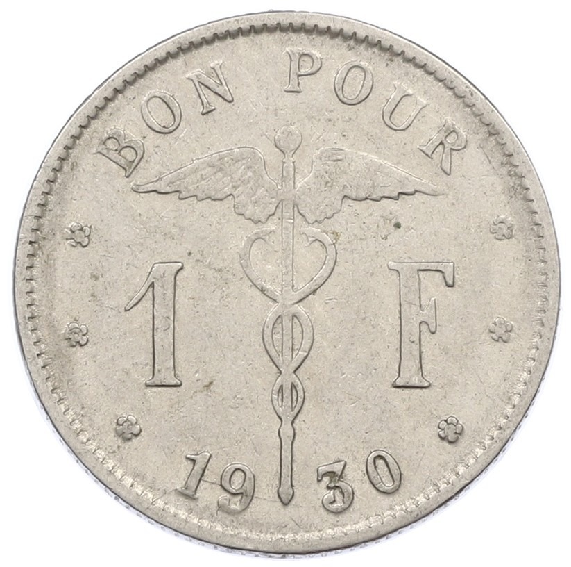 1 франк 1930 года Бельгия (Надпись на французском — BELGIQUE)