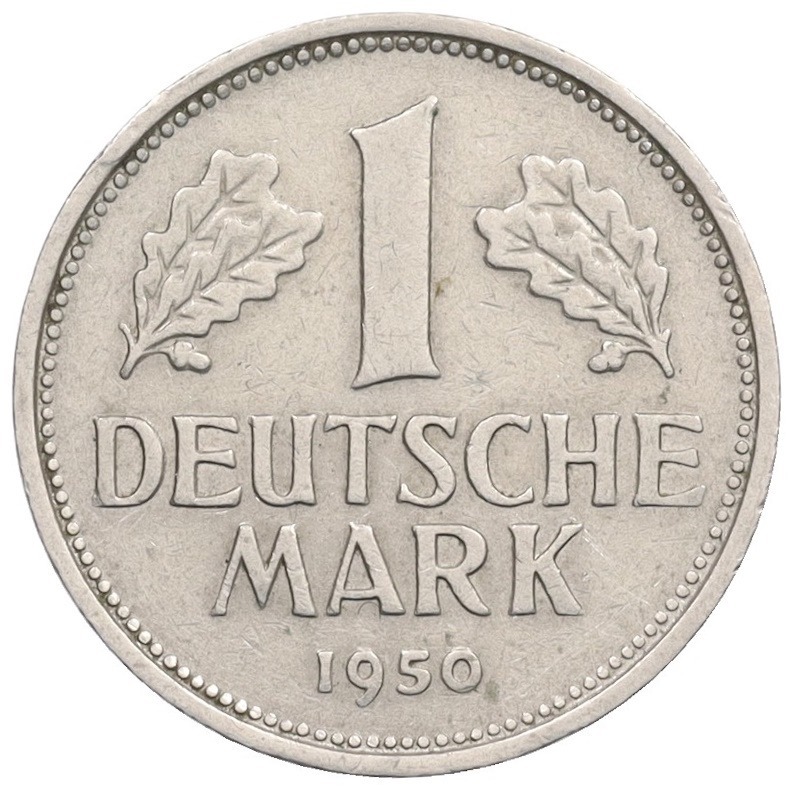 1 марка 1950 года F Западная Германия (ФРГ)