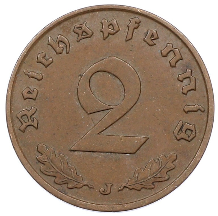 2 рейхспфеннига 1939 года J Германия