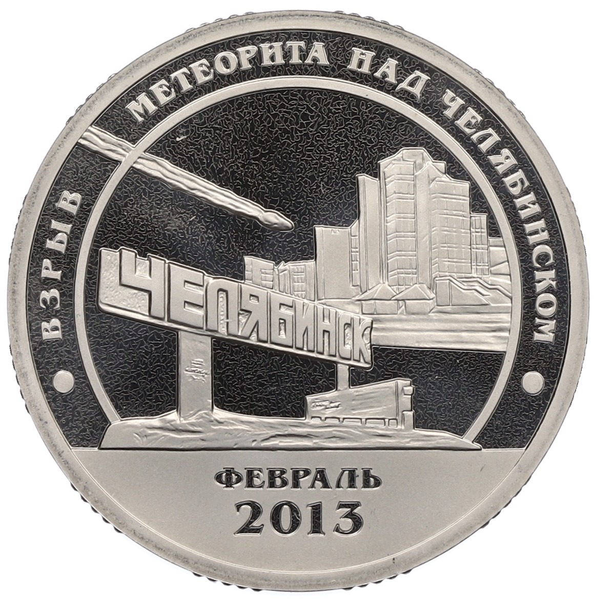 Монетовидный жетон 10 разменных знаков 2013 года СПМД Шпицберген «Взрыв метеорита над Челябинском»