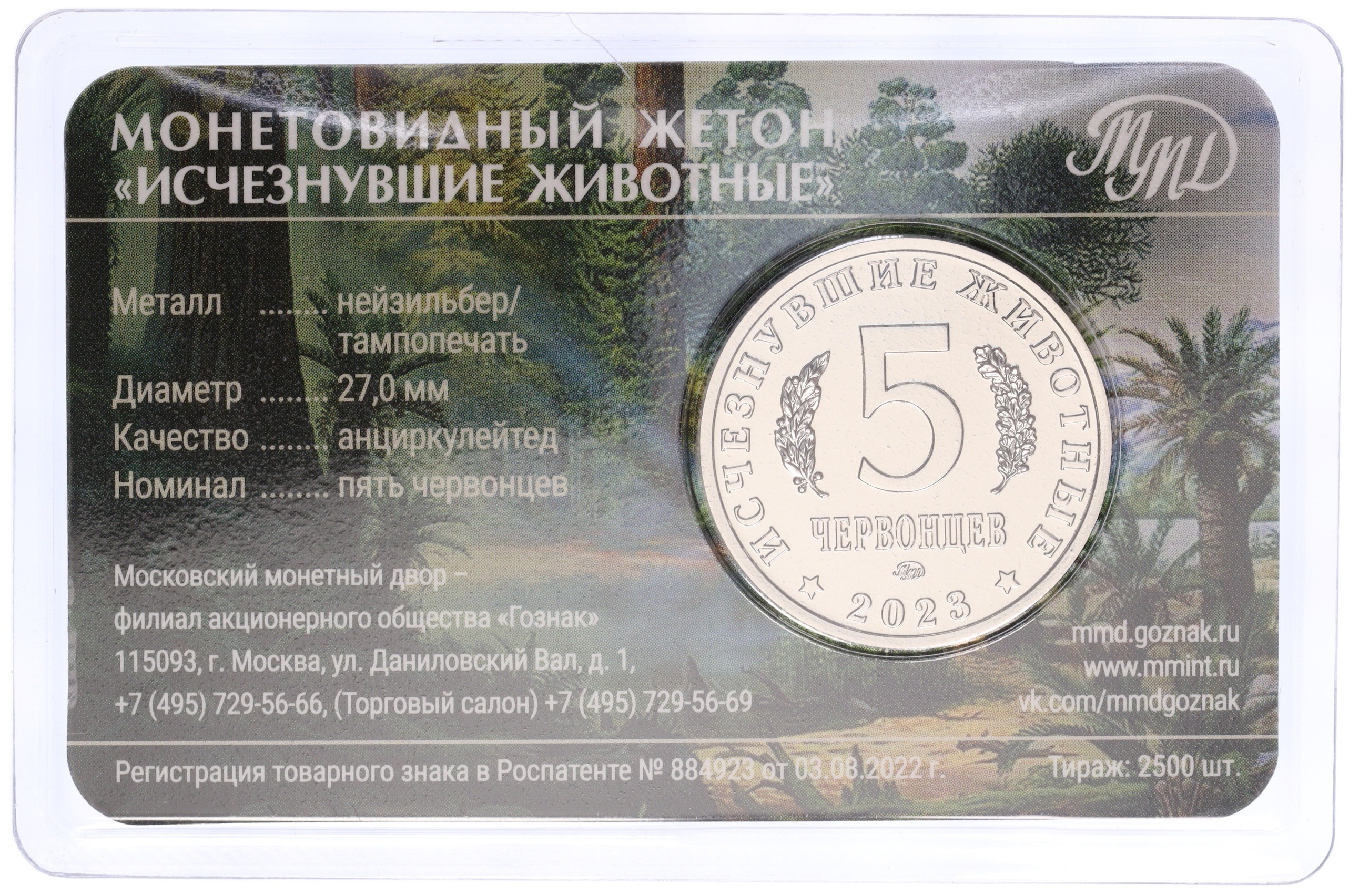 Монетовидный жетон 5 червонцев 2023 года ММД «Исчезнувшие виды — Сордес»