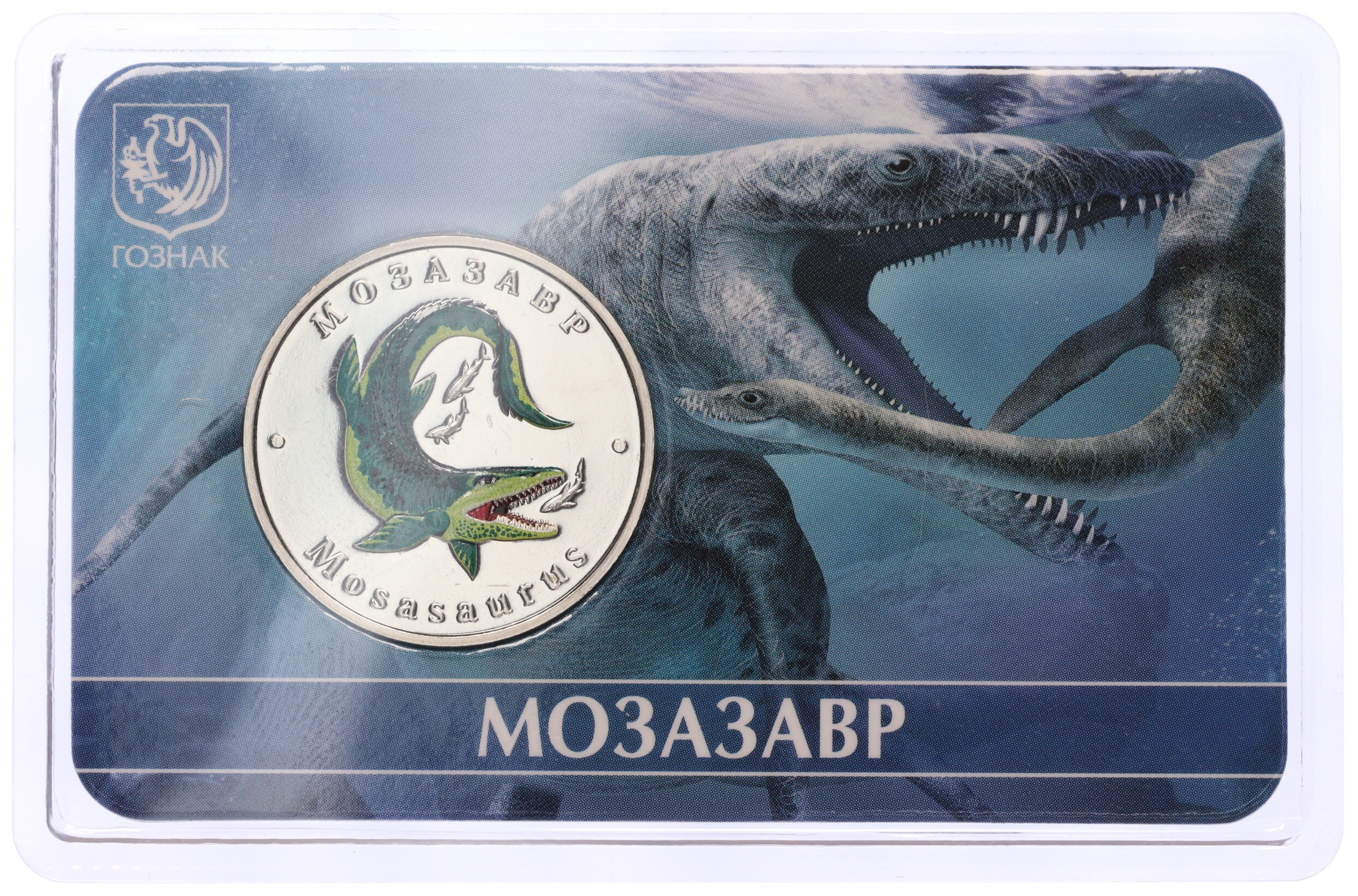 Монетовидный жетон 5 червонцев 2023 года ММД «Исчезнувшие виды — Мозазавр» (Цветное покрытие)
