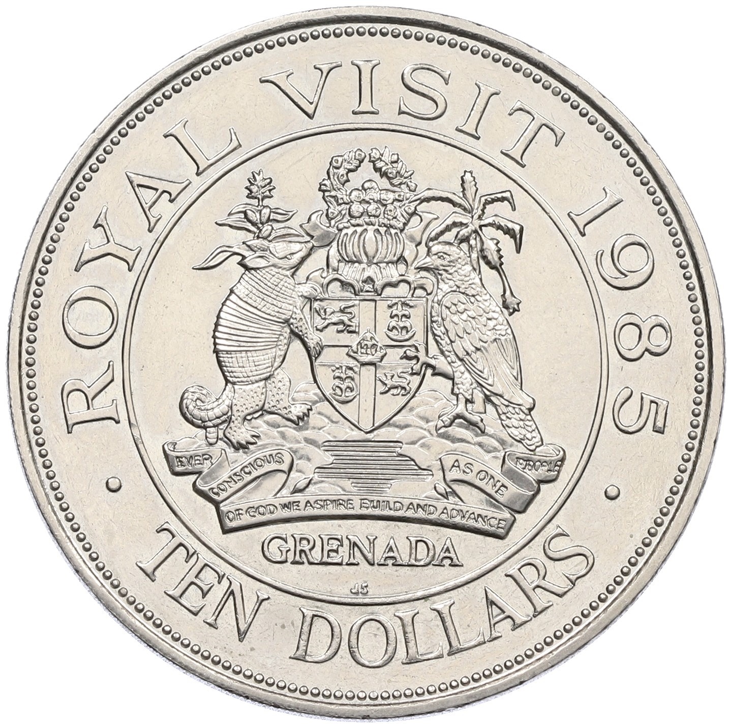 10 долларов 1985 года Гренада «Визит Королевы Елизаветы II»