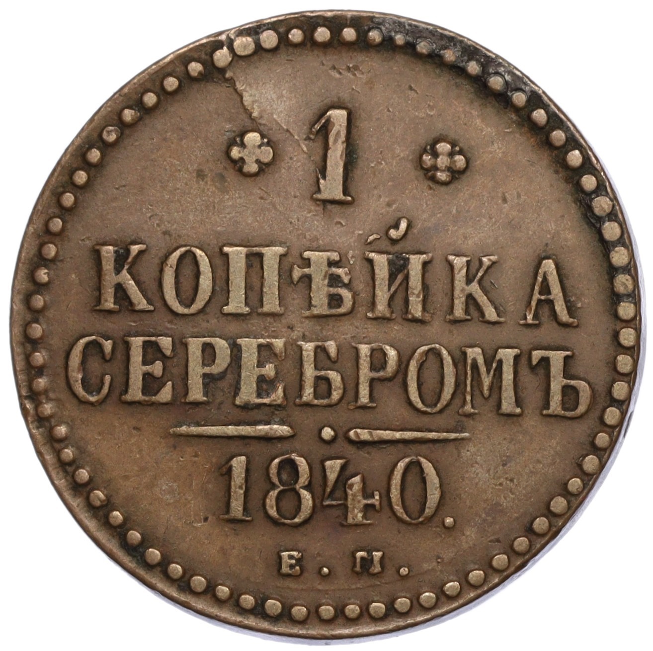 1 копейка серебром 1840 года ЕМ