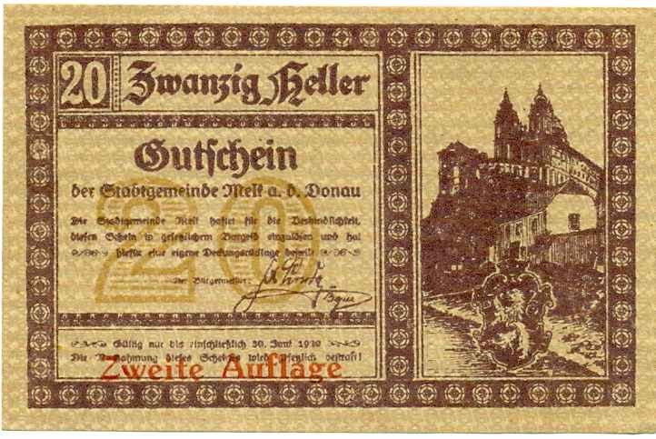 20 геллеров 1920 года Австрия — Мельк (Нотгельд)