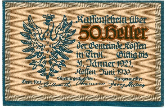 50 геллеров 1920 года Австрия — Кессен (Нотгельд)